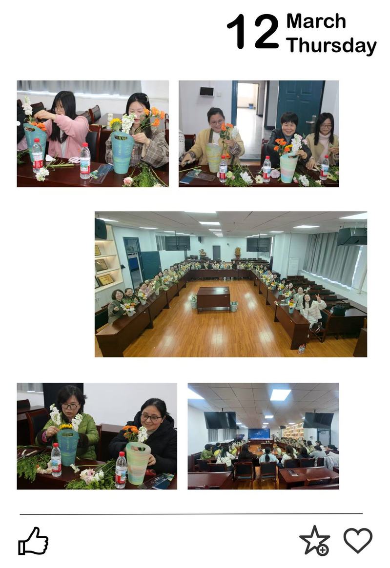 为庆祝“三八”国际妇女节,3月12日下午,910023威尼斯分工会于10603会议室举办了“花漾女神节・芬芳绽芳华”插花体验活动。全体女教职工欢聚一堂,共同度过了一个温馨且难忘的节日。